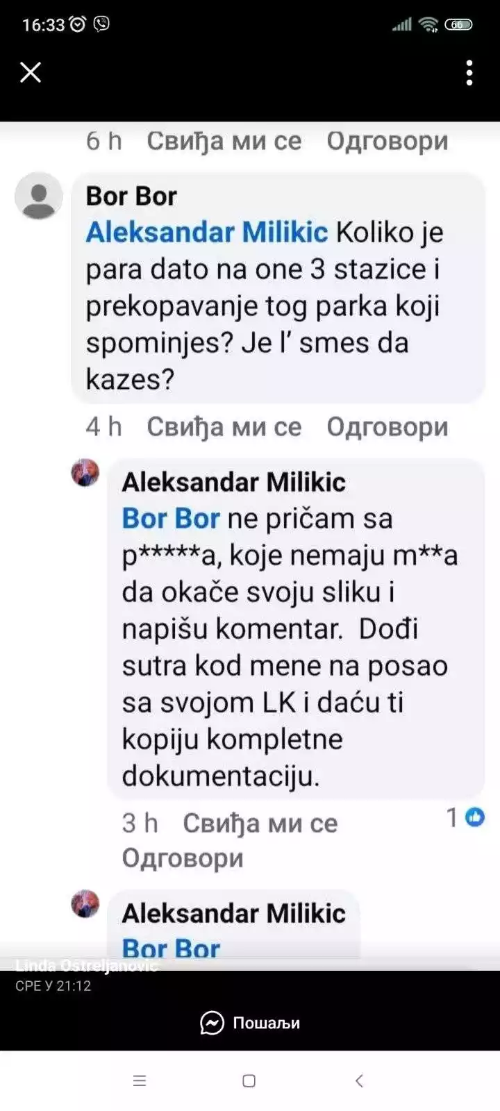Reakcije gradonačelnika Bora na kritičke komentare građana sve više podsećaju na ponašanje koje bismo mogli očekivati u rijaliti programu, a ne od osobe koja obavlja odgovornu funkciju. Njegovo omalovažavanje sugrađana i njihovo etiketiranje nije ponašanje koje priliči nekome ko je izabran da bude predstavnik svih građana, bez obzira na njihove stavove i kritike. Gradonačelnik je, pre svega, odgovoran građanima koji ga plaćaju iz svojih poreza, a to znači da je dužan da odgovara na njihove potrebe i pitanja na profesionalan i uvažavajući način. Umesto toga, bira da ignoriše konstruktivne kritike i da proziva one koji žele da poboljšaju stanje u svom gradu. Takav pristup nije samo neprofesionalan, već pokazuje i nedostatak ozbiljnosti u obavljanju funkcije. Lokalna vlast ne sme praviti selekciju među građanima na osnovu njihovih stavova, niti smemo dozvoliti da se bilo ko iz naše zajednice oseća nevažnim ili nepoželjnim. Gradonačelnik, kao predstavnik svih, mora da odgovara sa poštovanjem i razumevanjem, vodeći računa da svaki građanin ima pravo da izrazi svoje mišljenje i doprinese boljitku zajednice.